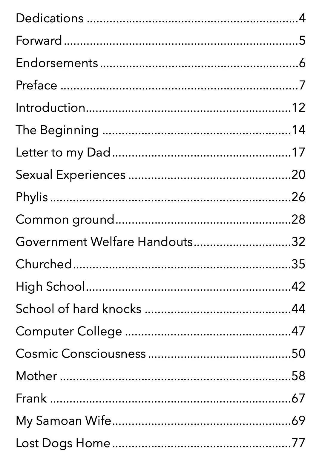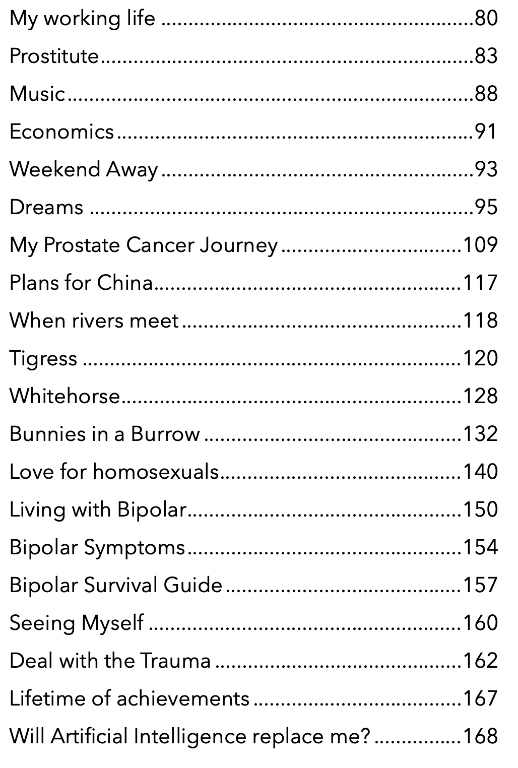 Table of Contents of the actual book